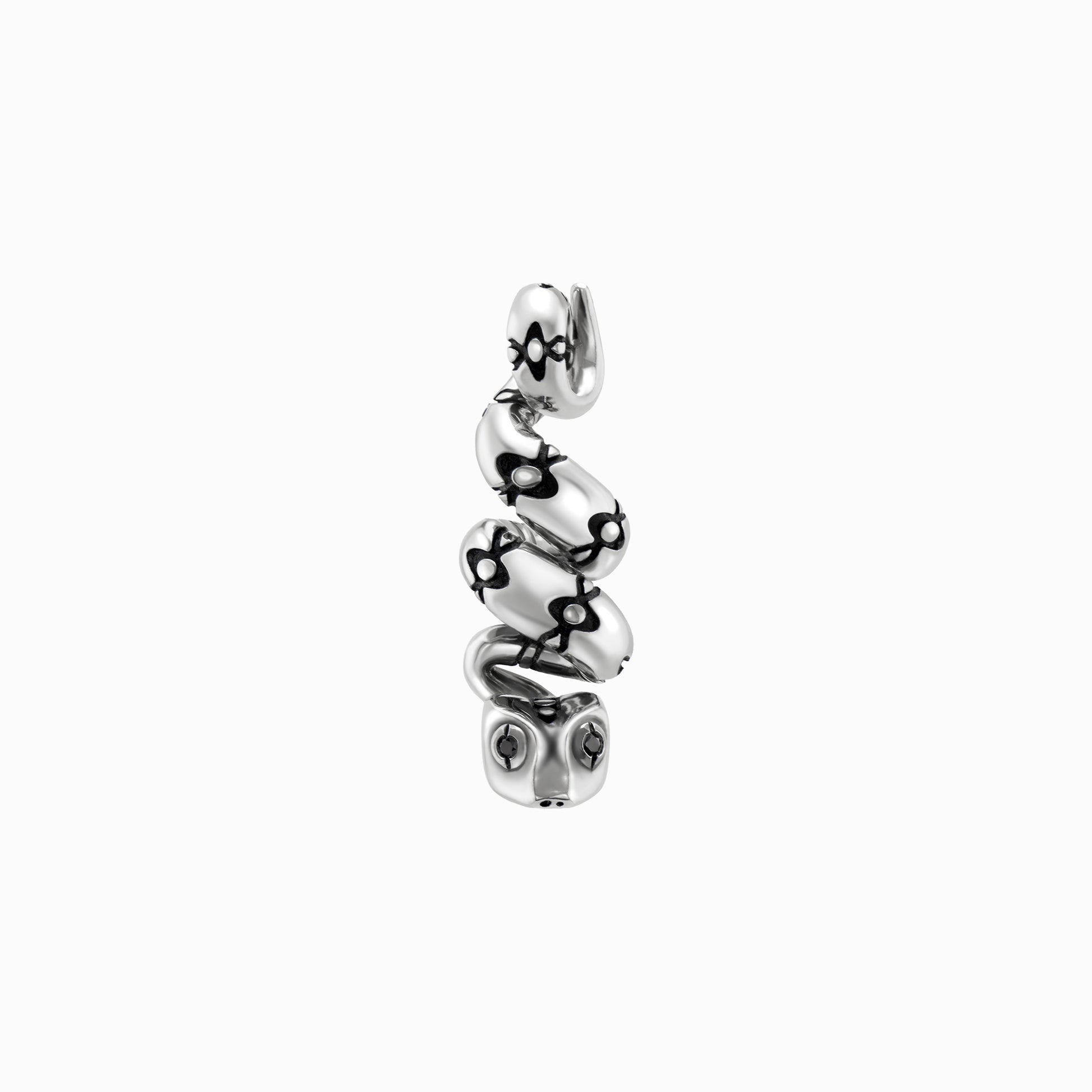 The BOA Constrictor Pendant is inspired by the character creation of Frances' daughter and animation student, Peri Cheung. This solid sterling silver 3D coiled snake pendant features a high polished finish with darkened motif for a more graphic element and black diamond eyes. This charming fellow plays well with others on a chain or can be taken over the edge on our leather cord. Each pendant is handcrafted in sterling silver and may vary slightly from piece to piece.