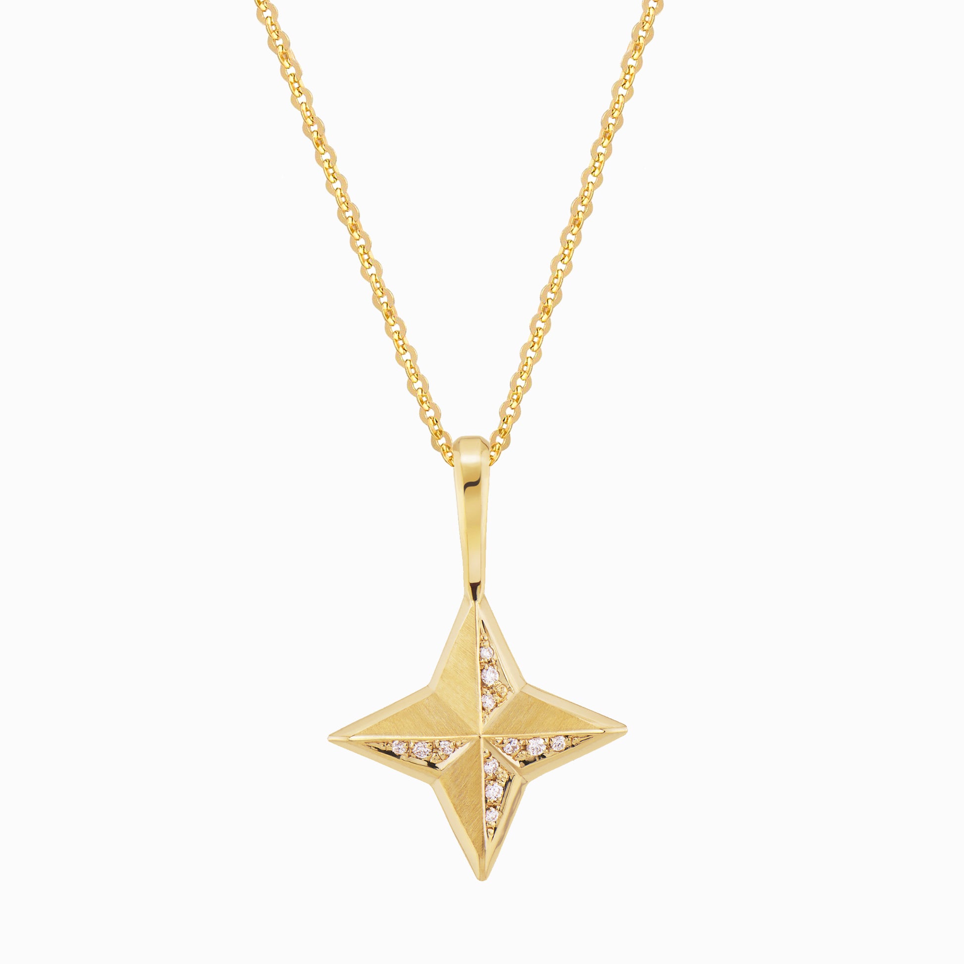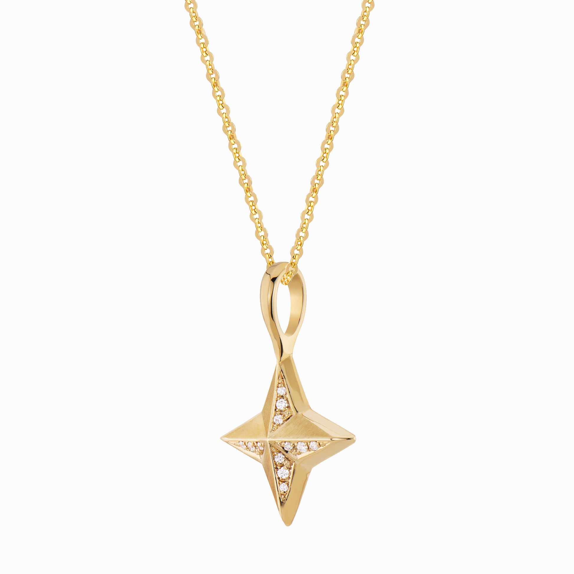 The FIERCE Cheeky Diamond Fine Necklace features a four-pronged 3-dimensional pendant with a combination of scintillating diamonds, satin finish and high-polished beveled edges. Powerful and intense, it wears well on our solid gold fine flat cable chain in your choice of length. Each pendant is handcrafted with hand-set pavé diamonds, hand-applied satin finish, and may vary slightly from piece to piece.