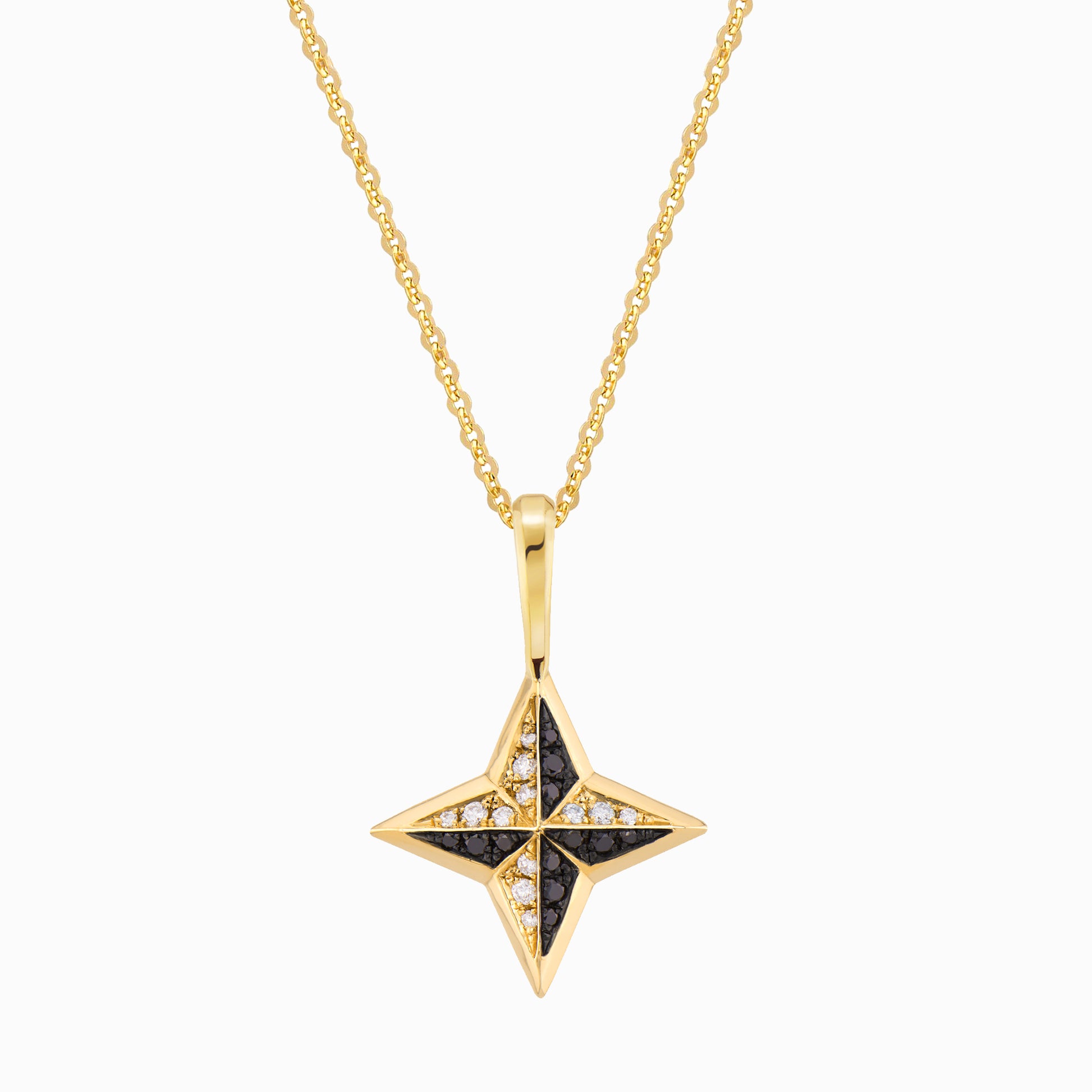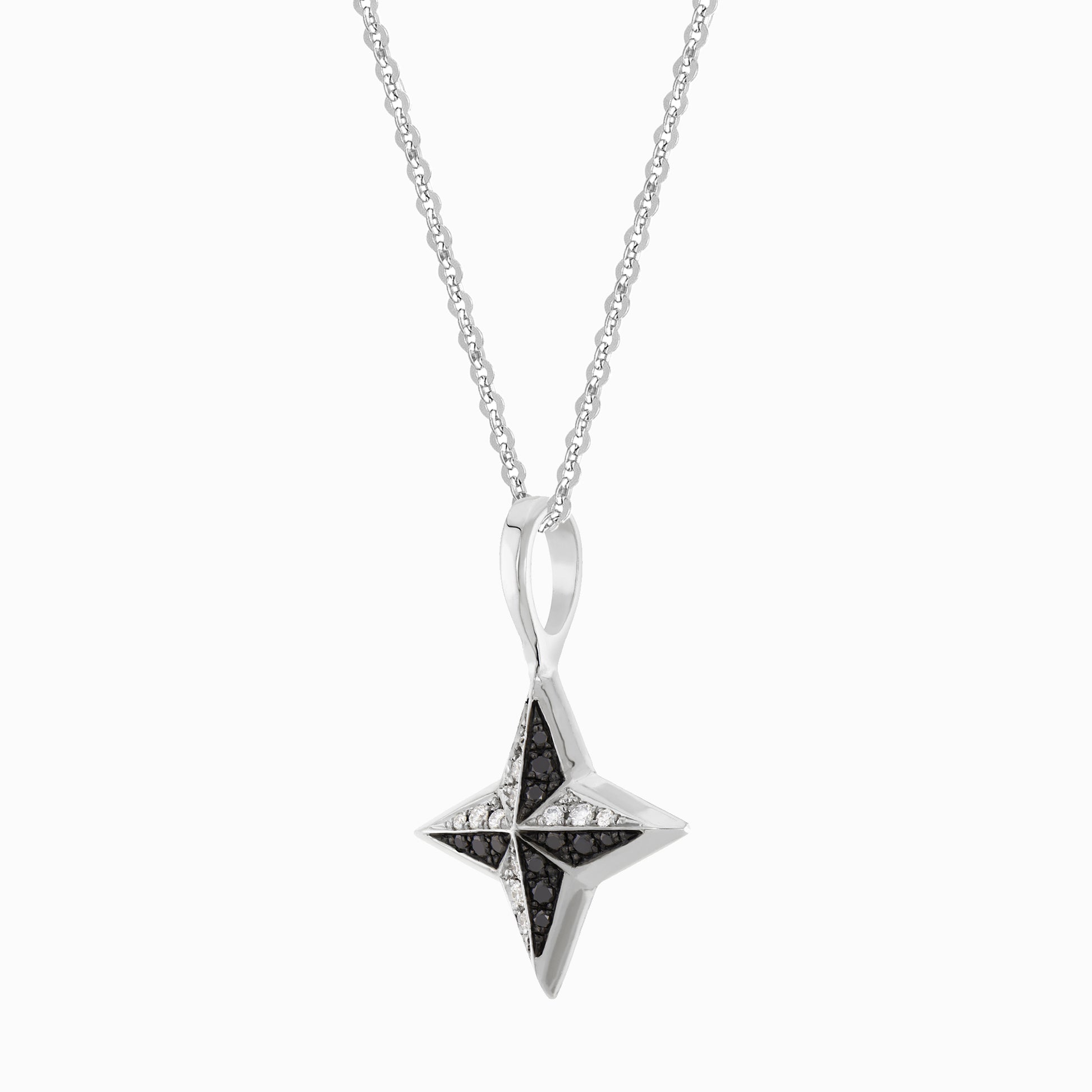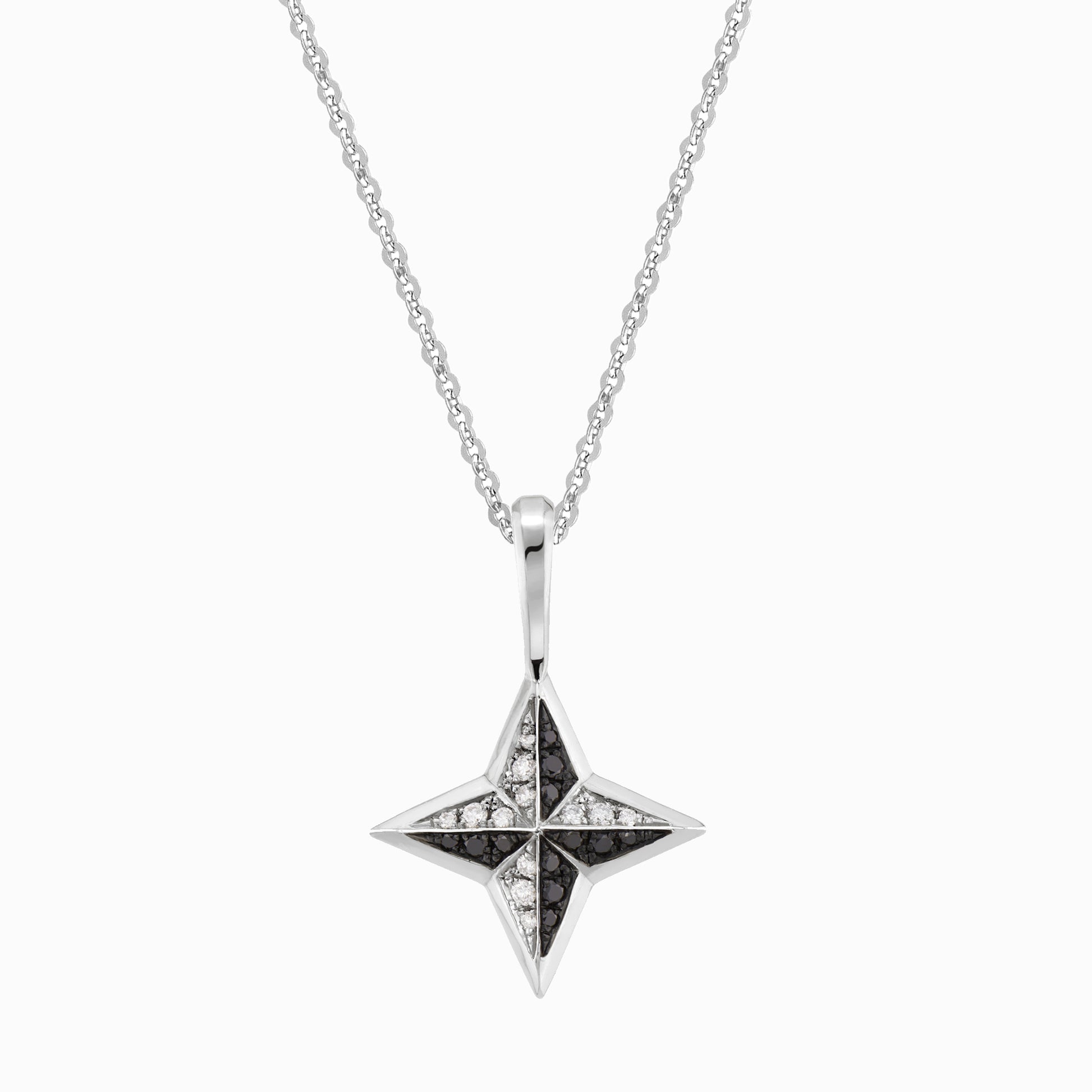 The FIERCE Cheeky Double Diamond Fine Necklace features a four-pronged 3-dimensional pendant with a show-stopping combination of scintillating white diamonds, dramatic black diamonds with black rhodium, and high-polished beveled edges. Powerful and intense, it wears well on our solid gold fine flat cable chain in your choice of length. Each pendant is handcrafted with hand-set pavé diamonds and may vary slightly from piece to piece.