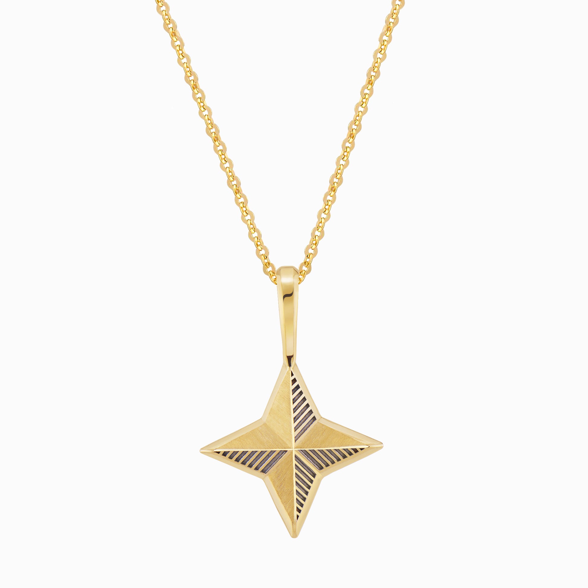 The FIERCE Cheeky Grill Fine Necklace features a four-pronged 3-dimensional pendant with a combination of graphic lines, satin finish and high-polished beveled edges. Powerful and intense, it wears well on our solid gold fine flat cable chain in your choice of length. Each pendant is handcrafted with hand-applied satin finish and black rhodium in recessed areas, and may vary slightly from piece to piece.