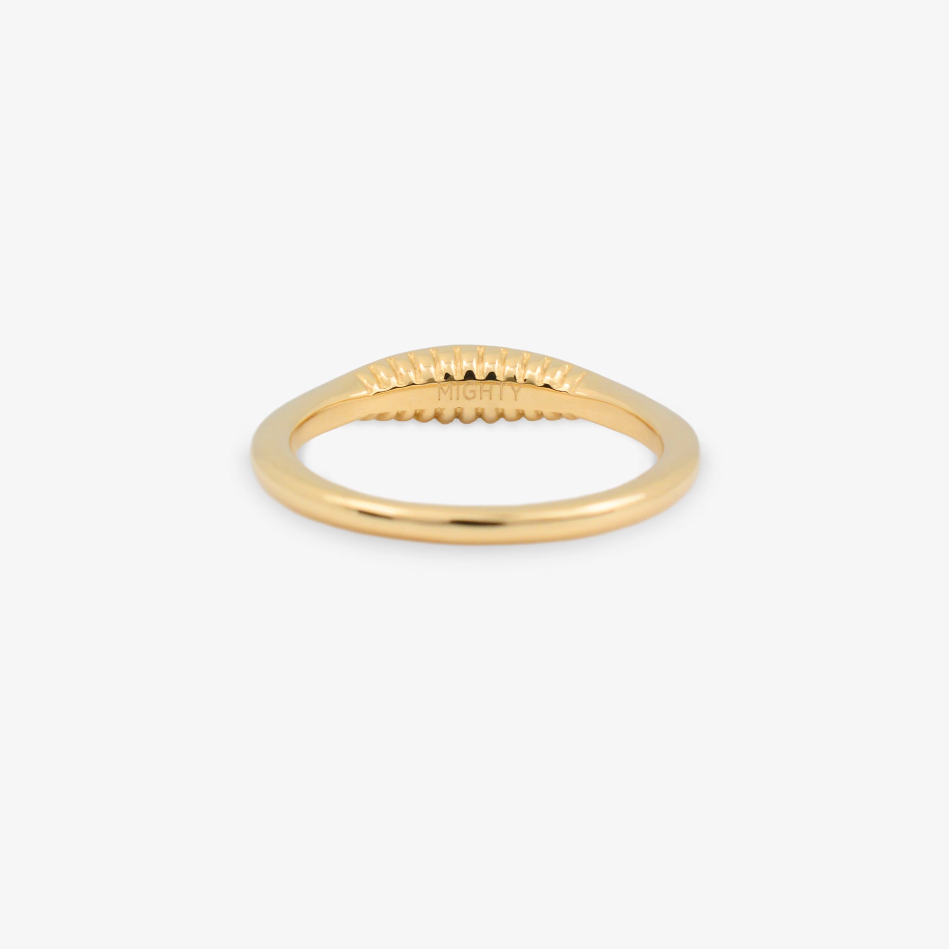 Featuring pavé-set genuine pink sapphire and orange sapphires, the graceful curves and antique-inspired fluting details of this Dôme ring exude a quiet strength. Designed to be lived in, it is the perfect balance of elegance and wearability. Beautiful on its own or as part of a stack, this ring is made-to-order in 14K or 18K recycled yellow or white gold with high polished finish.
