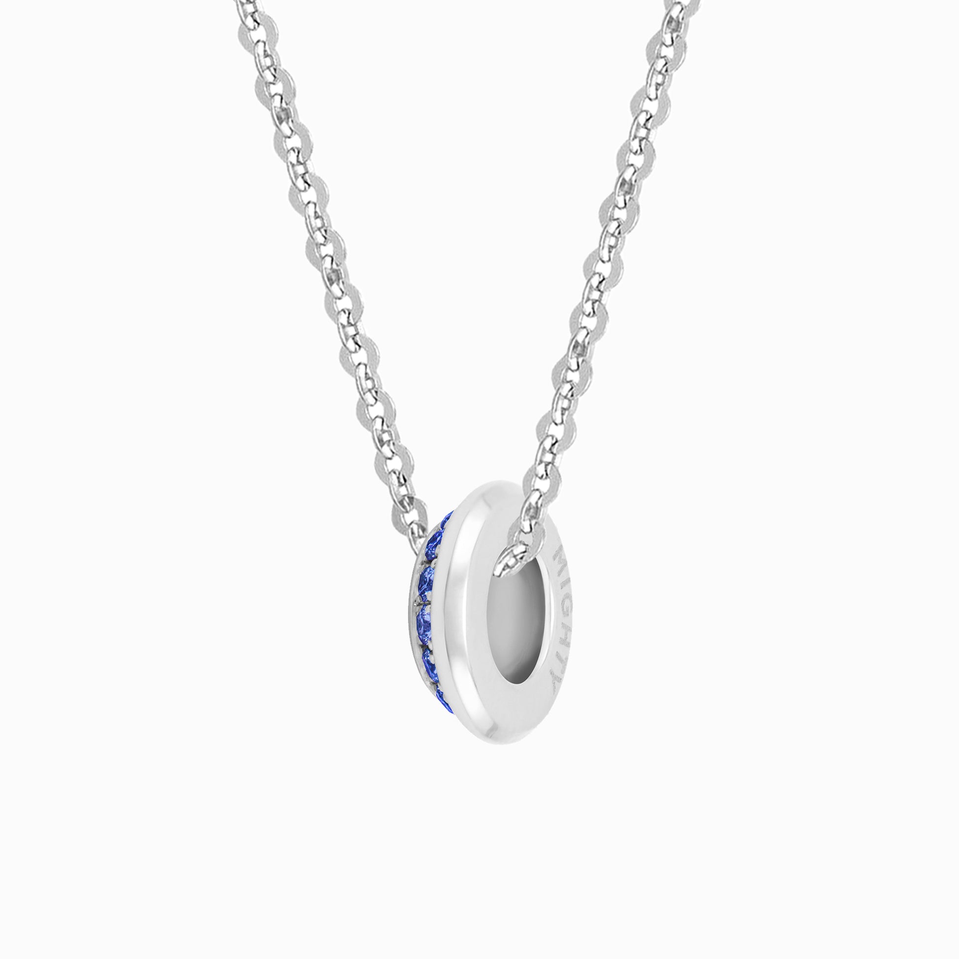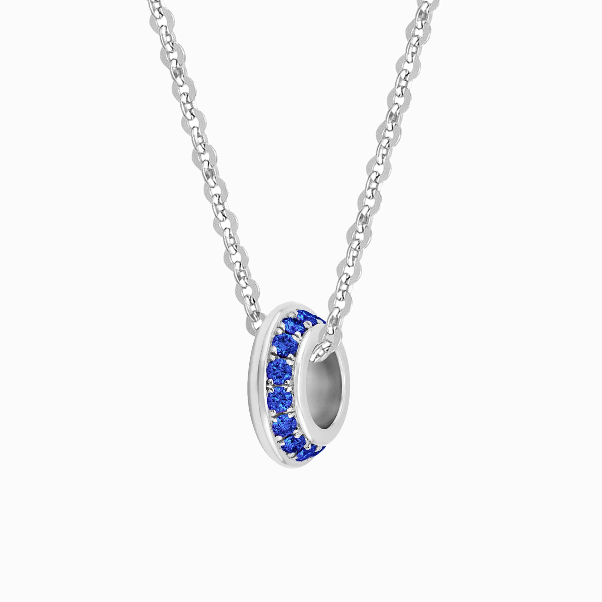 The OFF-KILTER Sapphire Rondelle Fine Necklace features a full circle of regal sapphires – September's birthstone. Representing a disruptor, the asymmetrical design with angled silhouette contrasts the crisp polished top edge that adds a flash of shine. Striking on its own, it wears well on our solid gold flat cable chain in your choice of length. Each rondelle is handcrafted with pavé-set genuine sapphires and may vary slightly from piece to piece.